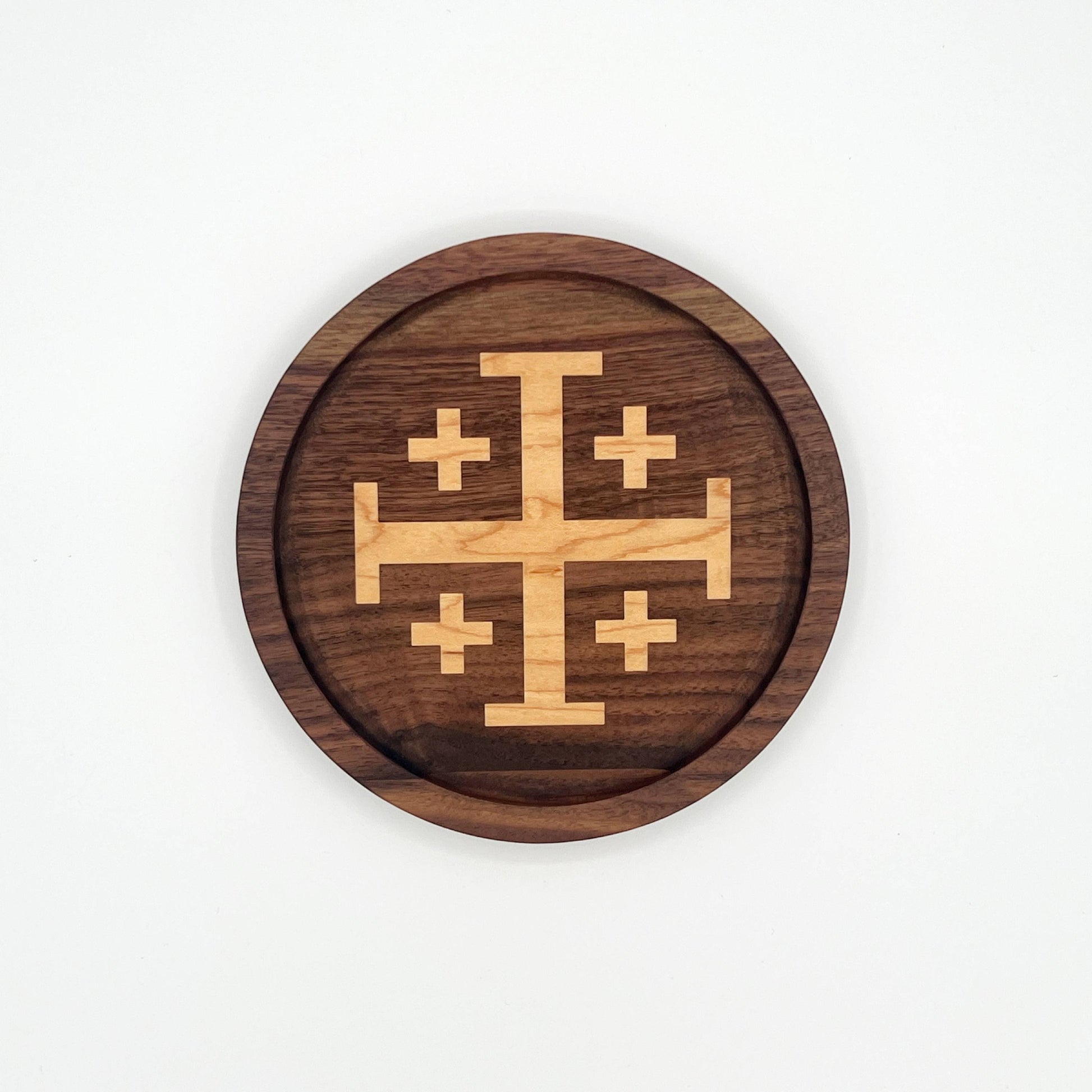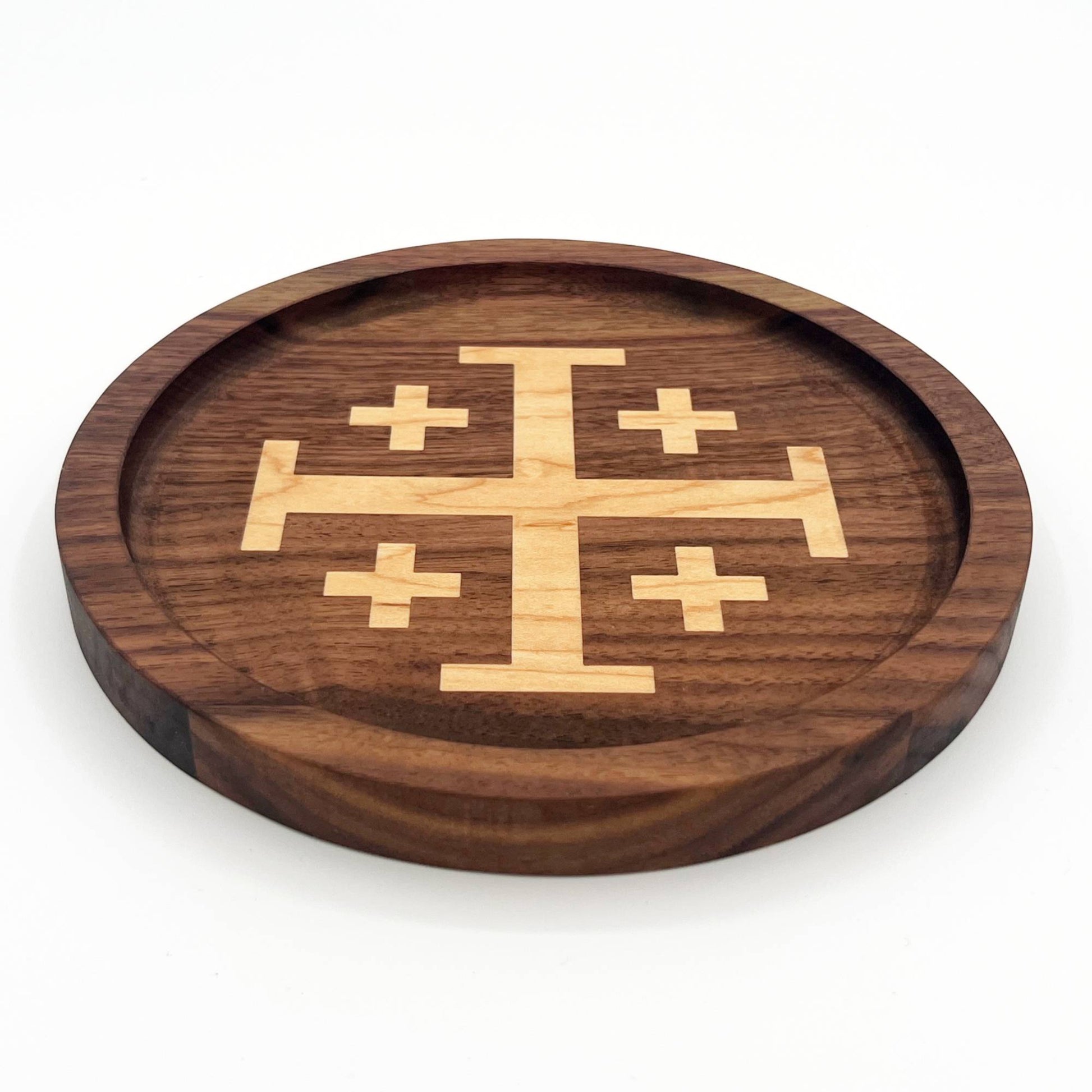 This elegant catchall tray features a beautifully inlaid Jerusalem Cross design at its center, blending spiritual symbolism with practical style. Ideal for organizing keys, jewelry, or small essentials like a rosary, it adds a touch of faith and sophistication to any tabletop, desk or dresser. Perfect for gifting or enhancing your home with meaningful decor.