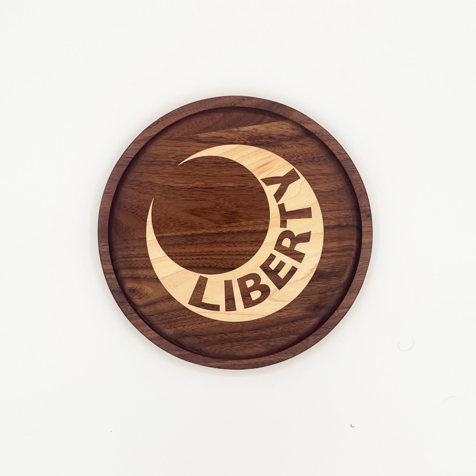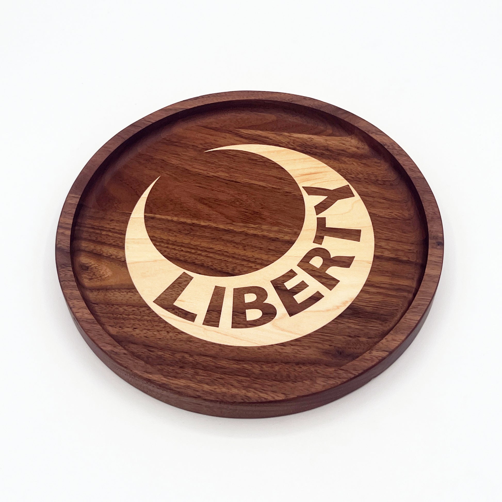 This black walnut catchall tray features an inlaid maple design at its center, and is perfect for organizing keys, jewelry, or small essentials like a rosary. It adds a touch of sophistication to any tabletop, desk or dresser.
