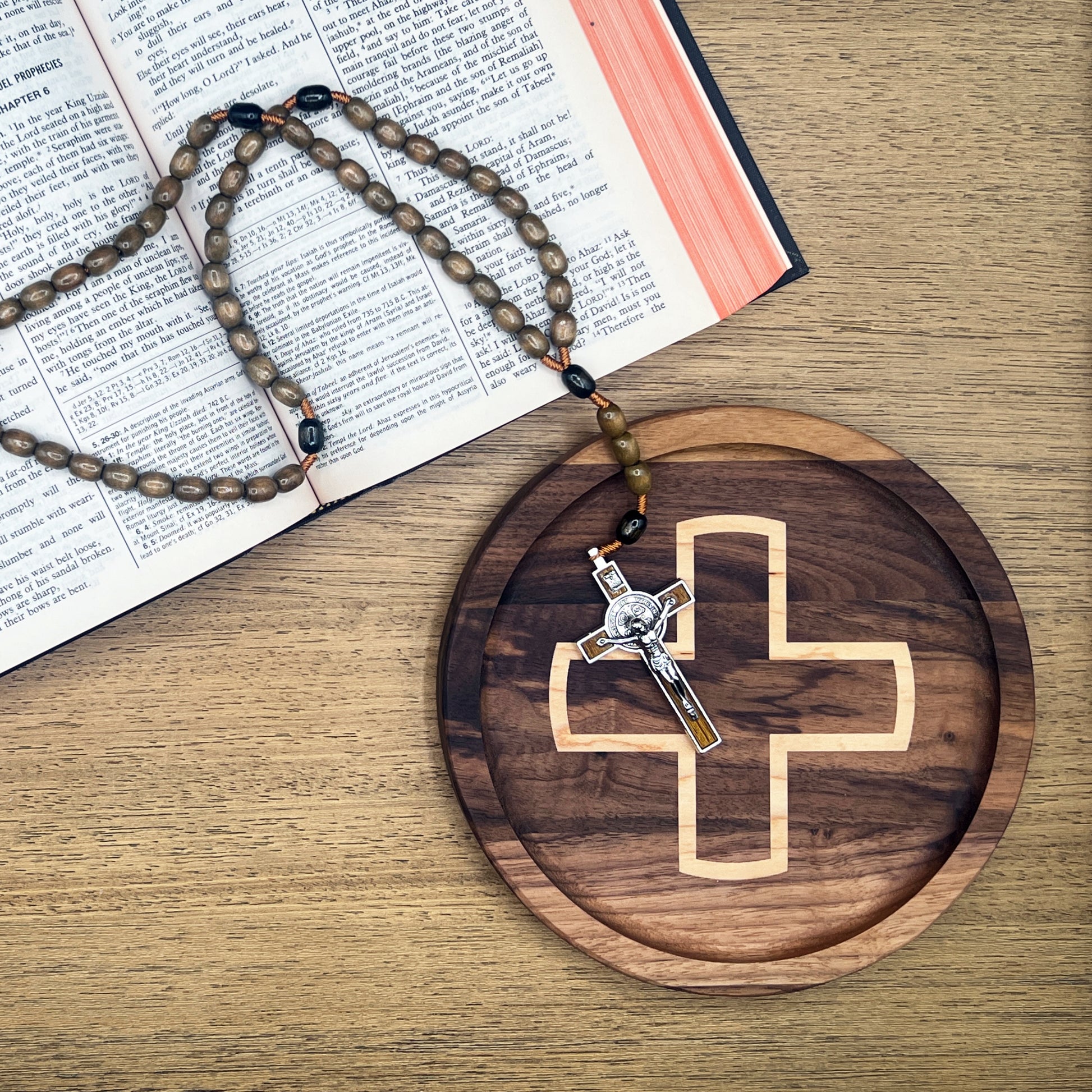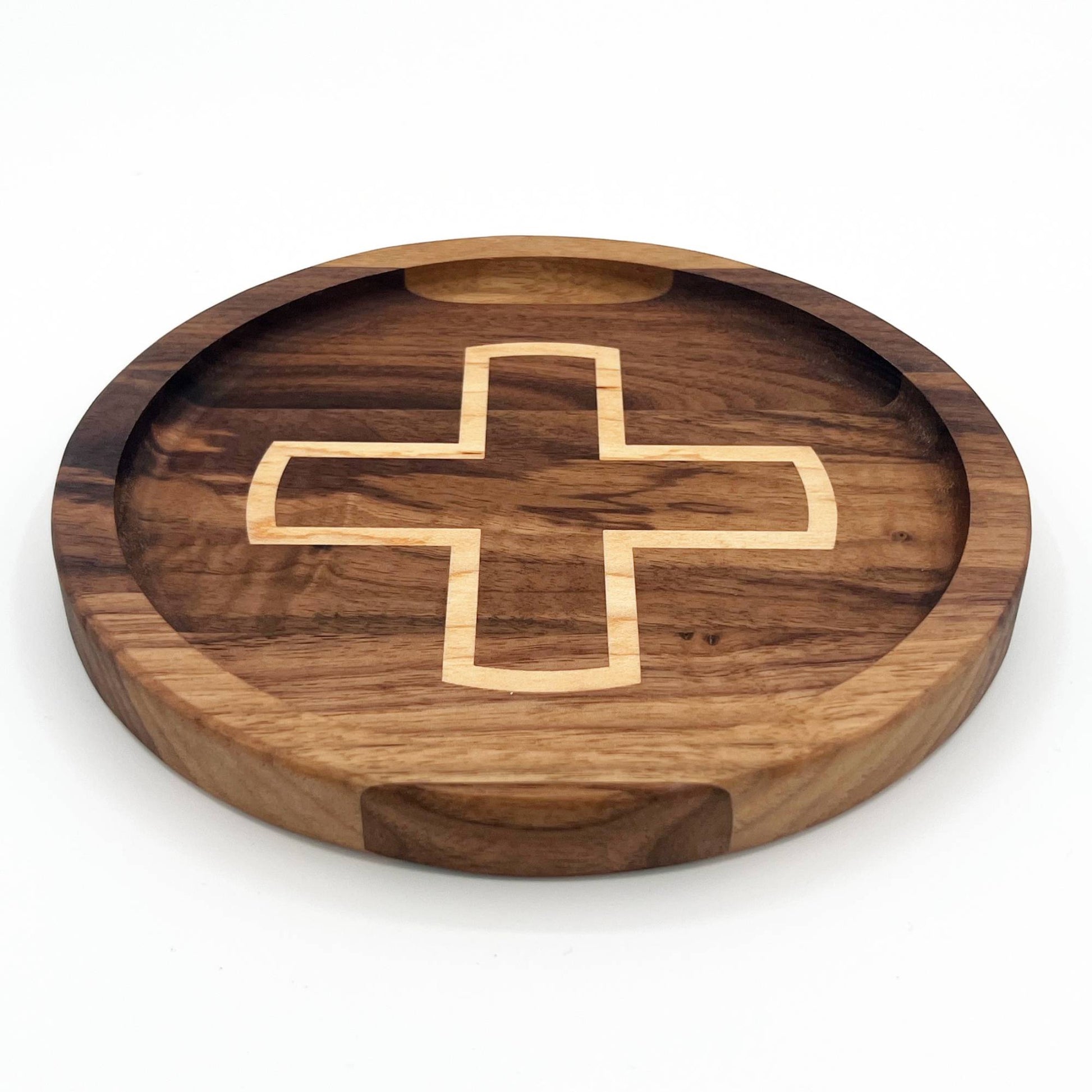 This elegant catchall tray features a beautifully inlaid cross design at its center, blending spiritual symbolism with practical style. Ideal for organizing keys, jewelry, or small essentials like a rosary, it adds a touch of faith and sophistication to any tabletop, desk or dresser. Perfect for gifting or enhancing your home with meaningful decor.